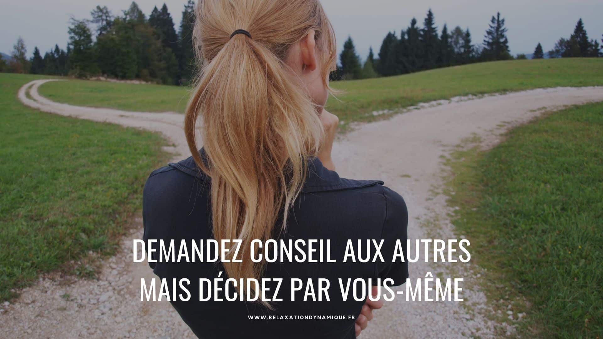 Si le fait de savoir aller demander conseil est une qualité, le fait de s'approprier ce conseil et de prendre le recul nécessaire avant de décider par soi-même en est une autre tout aussi importante.